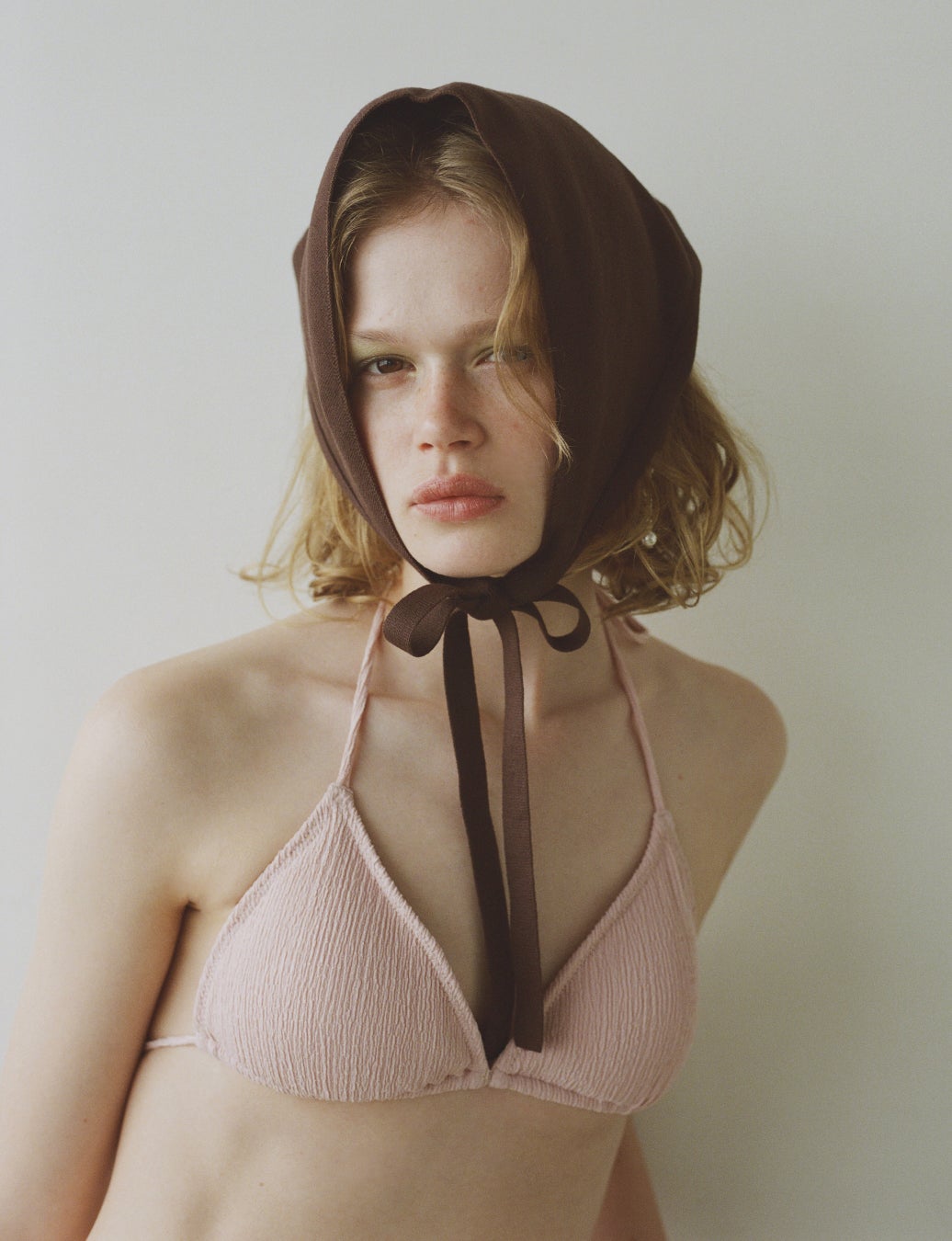 クロシェ編みのホルターネックビキニに、SNIDELロゴ入りナイロン巾着リュックが付いたセットアイテム。ビキニはパッド入り・ノンワイヤーで着心地よく、安心して着用できます。