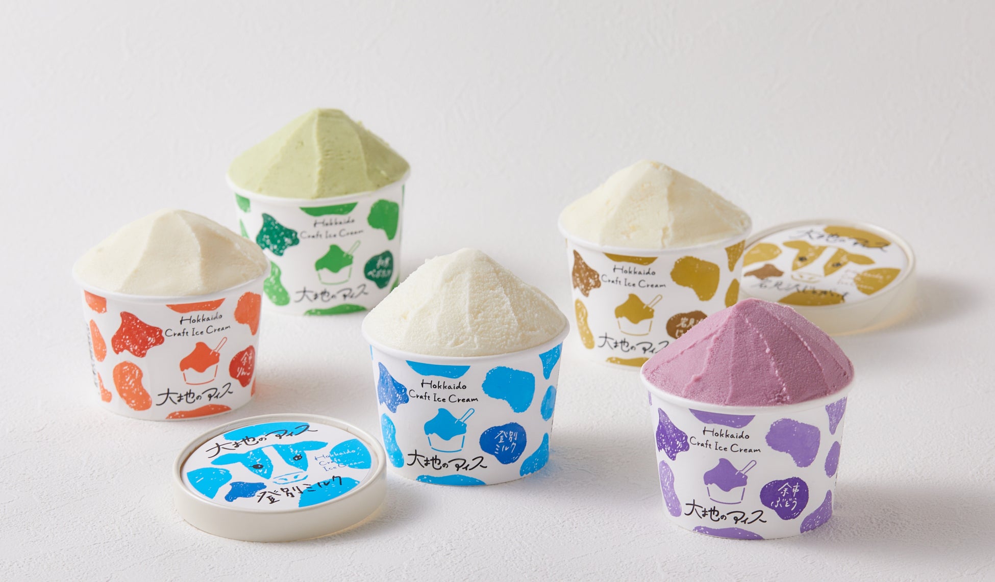北海道らしさを感じるハスカップや山わさびの他、トリュフチョコやみそなど、個性的なフレーバーでもスッキリとした後味を楽しめるのは、ストレスなく育った放牧牛ミルクをベースにしているから。