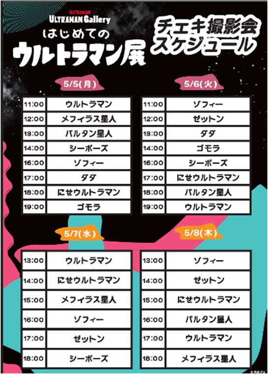 ウルトラマンやウルトラ怪獣、宇宙人とのチェキ撮影会をイベント期間中毎日開催します。