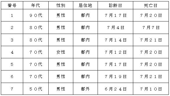 都内で新型コロナウイルスに感染した方が死亡されましたのでお知らせします。
