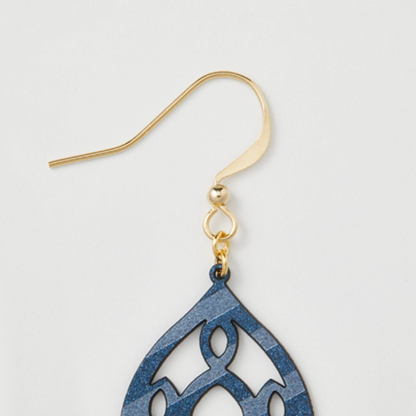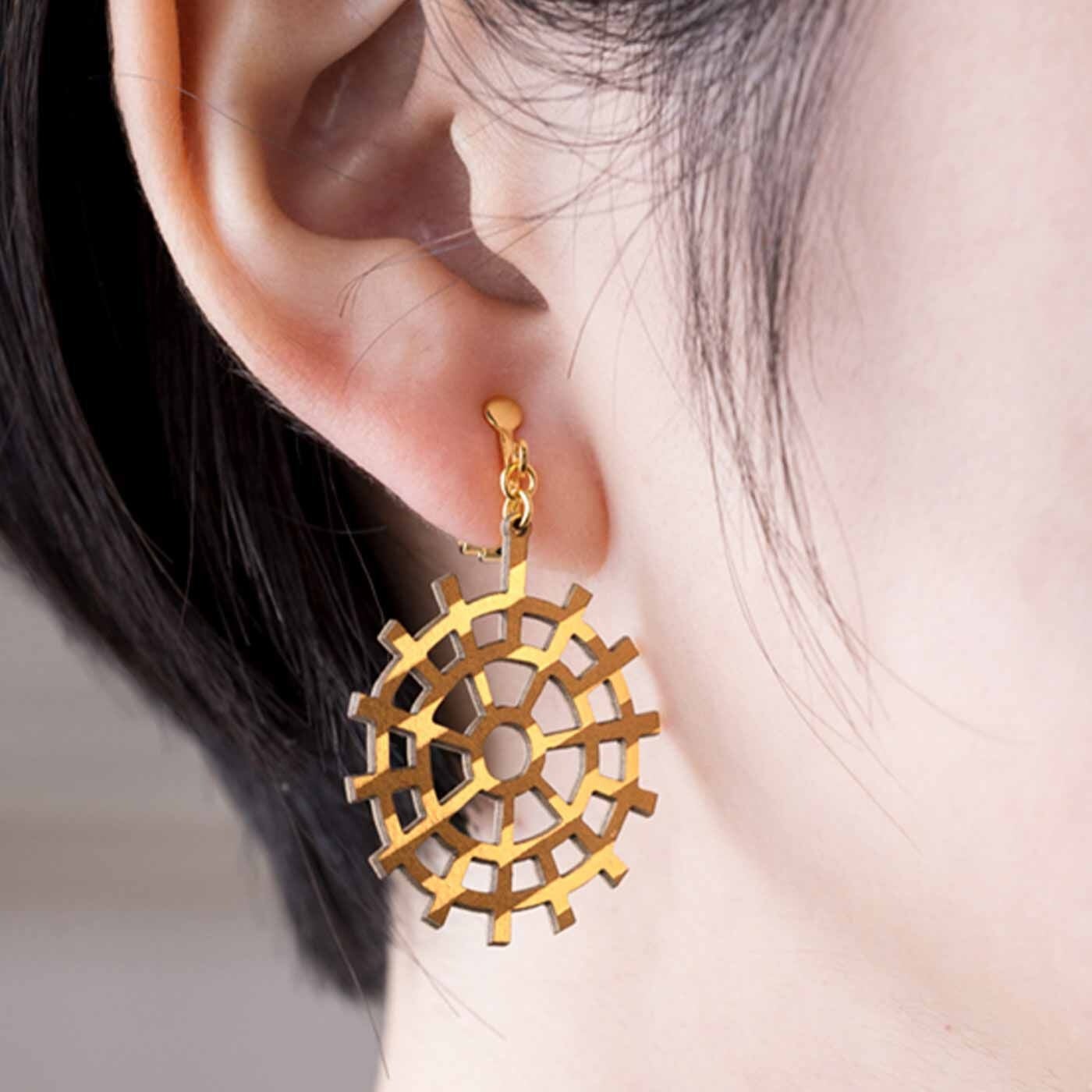 紙製のピアスは着けているのを忘れてしまいそうなくらいの軽さ。伝統技術と御仏を拝む心の大切さをデザインに落とし込んだ、ほかにないアクセサリーです。