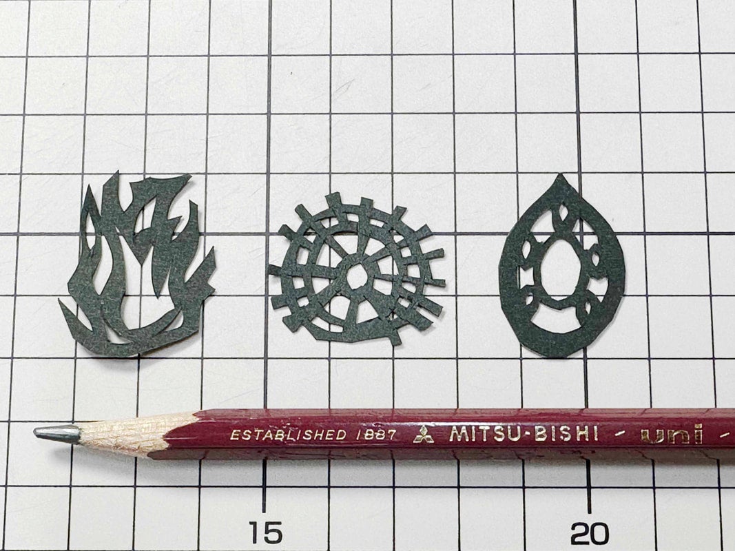 デザインのもとになる切り絵の製作から、イヤアクセサリーへデザインが完成していく様子。パールやマット調の箔を用いることで華美になりすぎないように、宝珠の輝きを表現したアイテムストーリーを「おてらぶブログ」で読む>> https://feli.jp/s/pr231123/2/