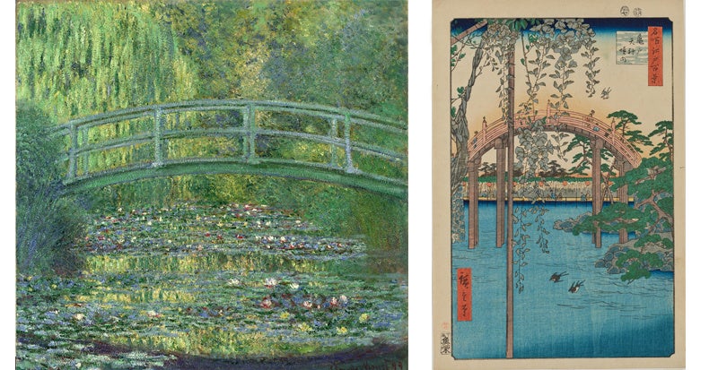 19世紀後半、ヨーロッパは「ジャポニスム」といわれたムーブメントに沸き、画家たちは浮世絵の表現と色彩に魅せられました。透視図法などを無視した平面性や大胆なデフォルメなど画面構成、さらには自然へのまなざしなど、浮世絵が芸術の都・パリで西洋絵画にもたらしたものを、歌川広重やクロード・モネなど、それぞれの名作を比較しながら解説します。