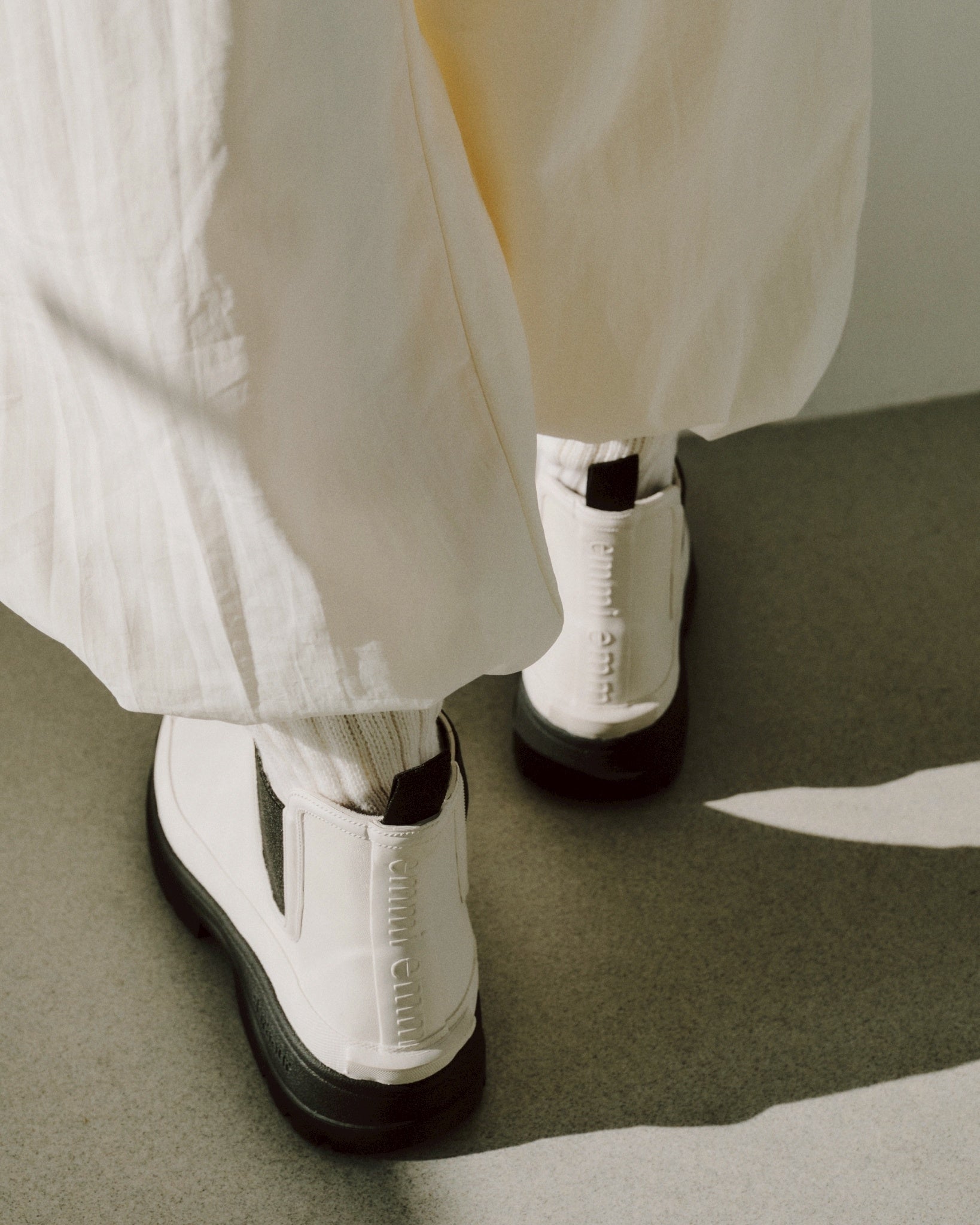 チャンキーなソールが印象的なレインブーツ”NIMBUS(ニンバス)”にウィメンズモデルが登場。緩やかにカーブしたラインにフロントのロゴパッチがアクセントのモデルに、バックスタイルには大胆なemmiロゴを配した特別仕様。サイドゴアスタイルのニンバスは、履き口のゴムや前後にループを備え、着脱しやすくストレスフリー。別注はモードなブラックとクリアーなホワイトの2色展開です。