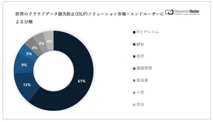 世界のクラウドデータ損失防止(DLP)ソリューション市場も、エンドユーザーに基づいて、ITおよびテレコム、BFSI、政府、健康管理、製造業、小売、および兵站にセグメント化および供給について分析されています。ITとテレコムセグメントは、これらのセグメントの中で大きなシェアを獲得すると予想されます。このセグメントは、適切な管理とセキュリティを必要とする IT およびテレコム会社によるデータ トラフィックの増加を背景に成長すると予測されています。たとえば、2022年には、約1兆米ドルがテレコムサービスに費やされていることに気づきました。データトラフィックの年間レートは、世界中で約50エクサバイトであることが観察されています。