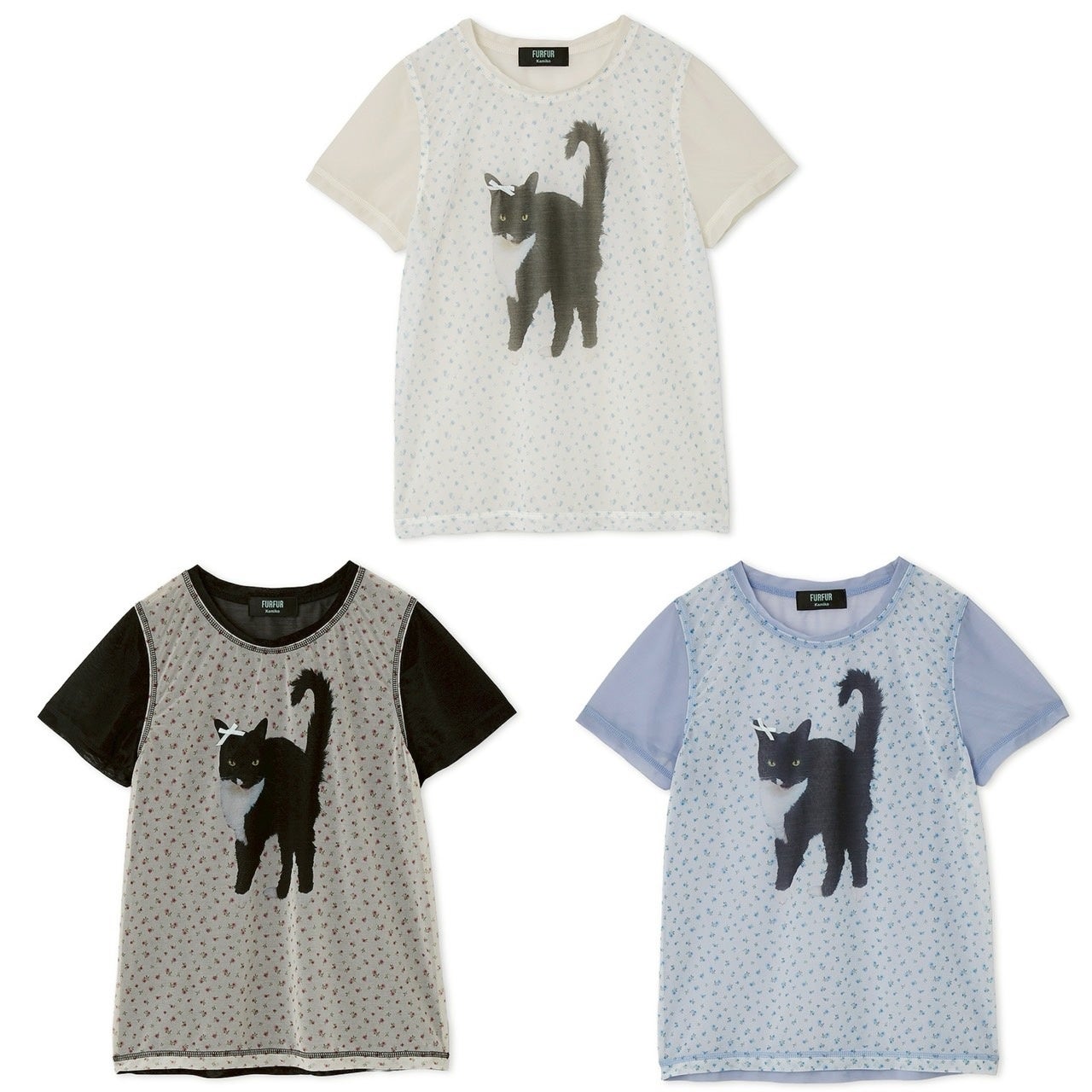 愛猫「Oolong(ウーロン)」をモデルにしたモード感のあるシアー素材のTシャツ。