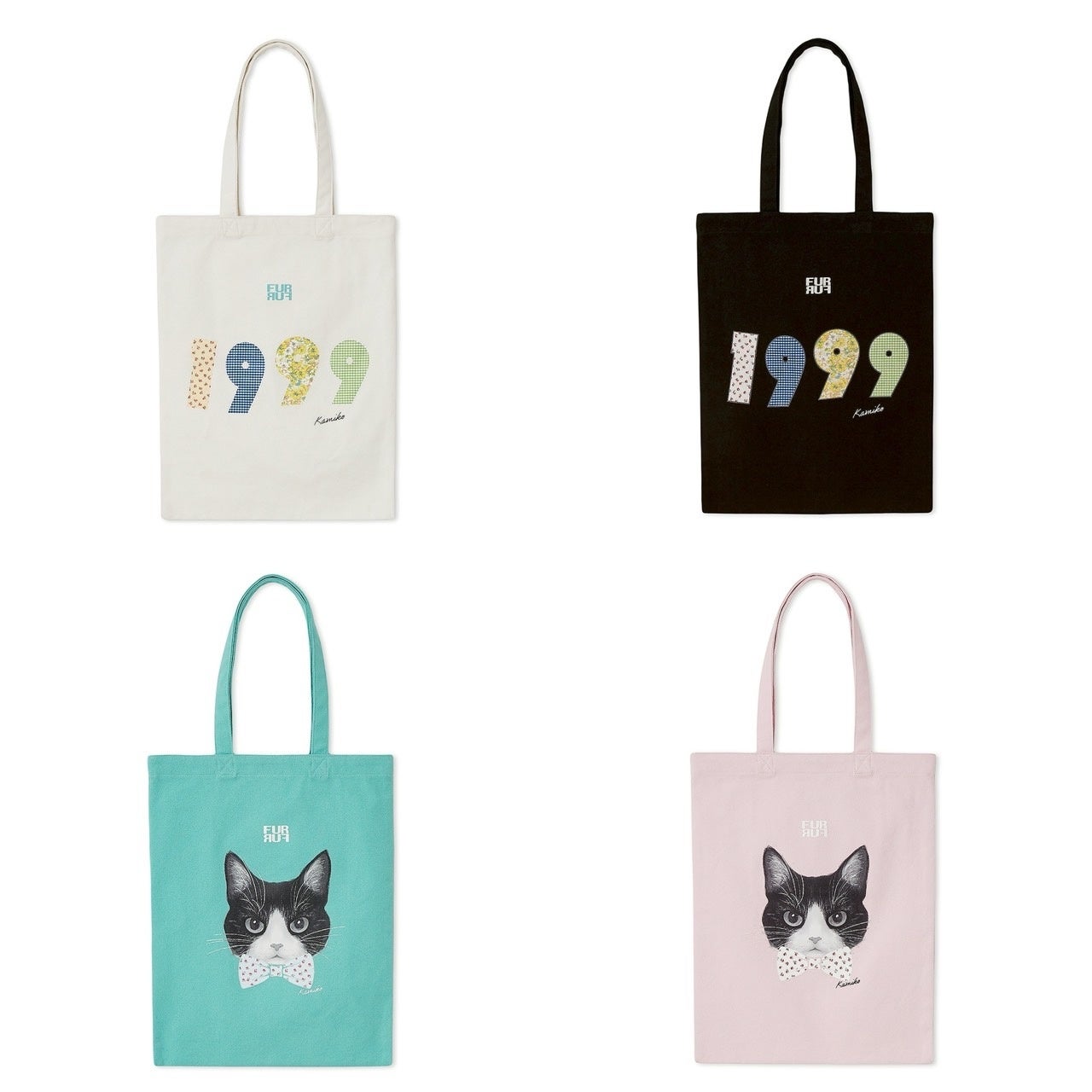 愛猫「Hana」と生まれ年の「1999」をそれぞれフロントにプリントしたA4サイズのキャンバストートバッグ。