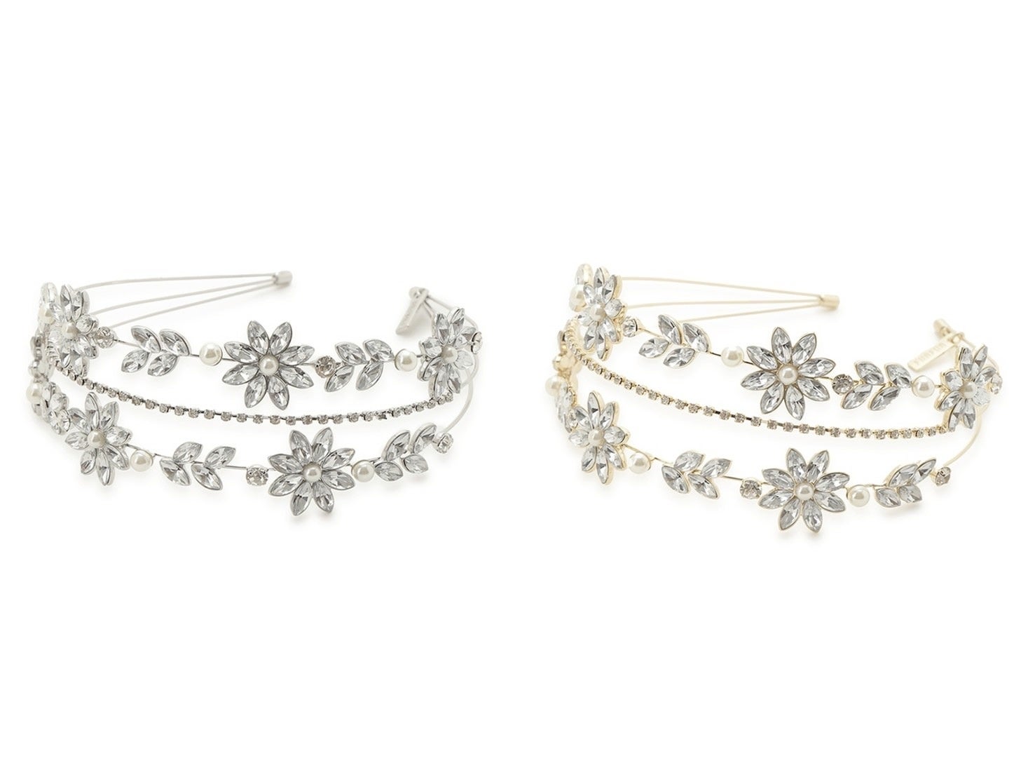 ビジューとパールをちりばめ、華やかで愛らしい上國料さんをイメージした3連ティアラカチューシャ。