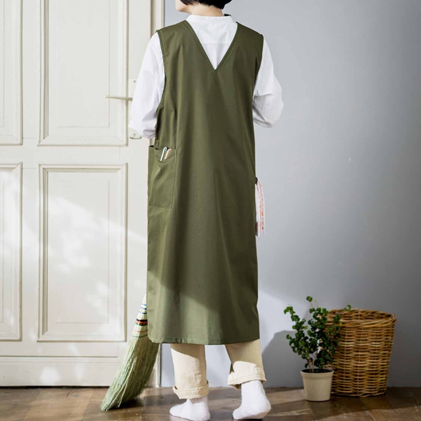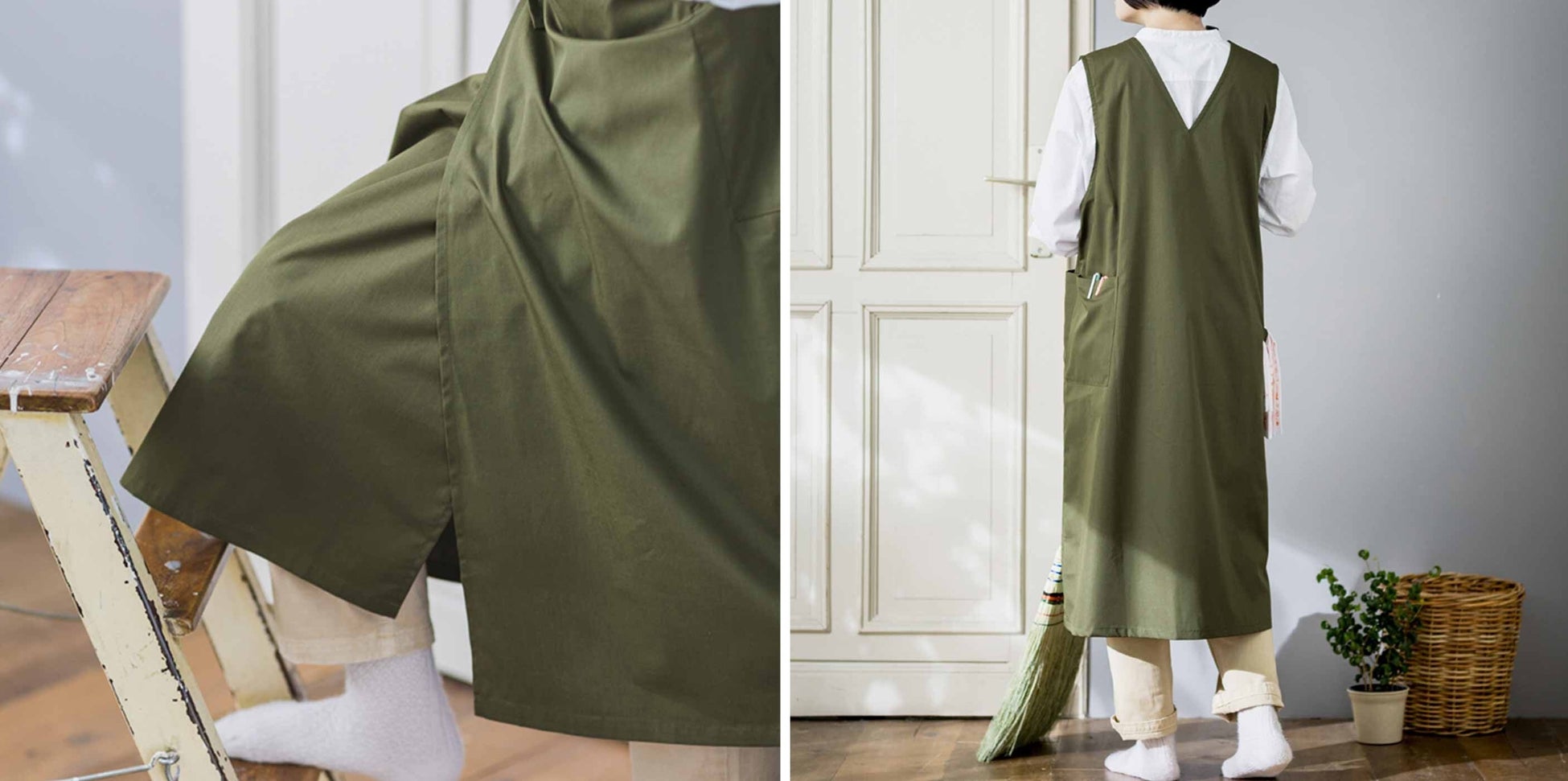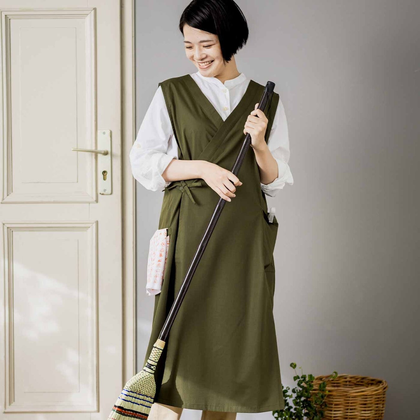 あわただしい日々も家事に対する視点が変わり、清らかな気分で過ごせそうな作務衣風スタイルのエプロン