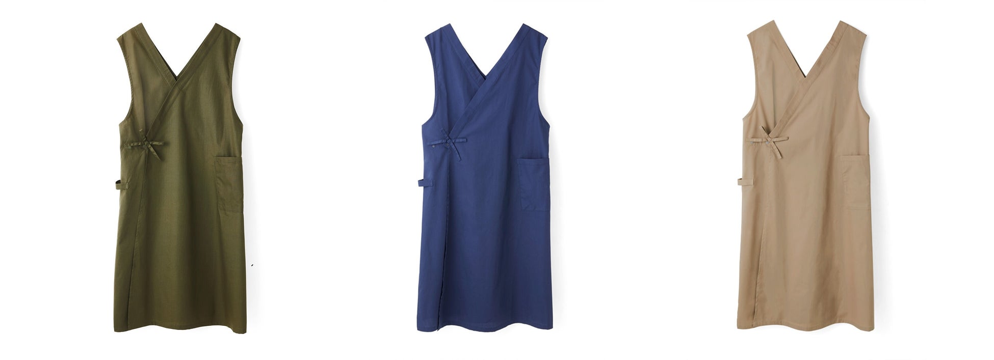 大掃除にも活躍しワンマイルウェアとしても着られる「羽織って心のスイッチオン ととのう作務衣風エプロン」がフェリシモ「おてらぶ™」から新登場