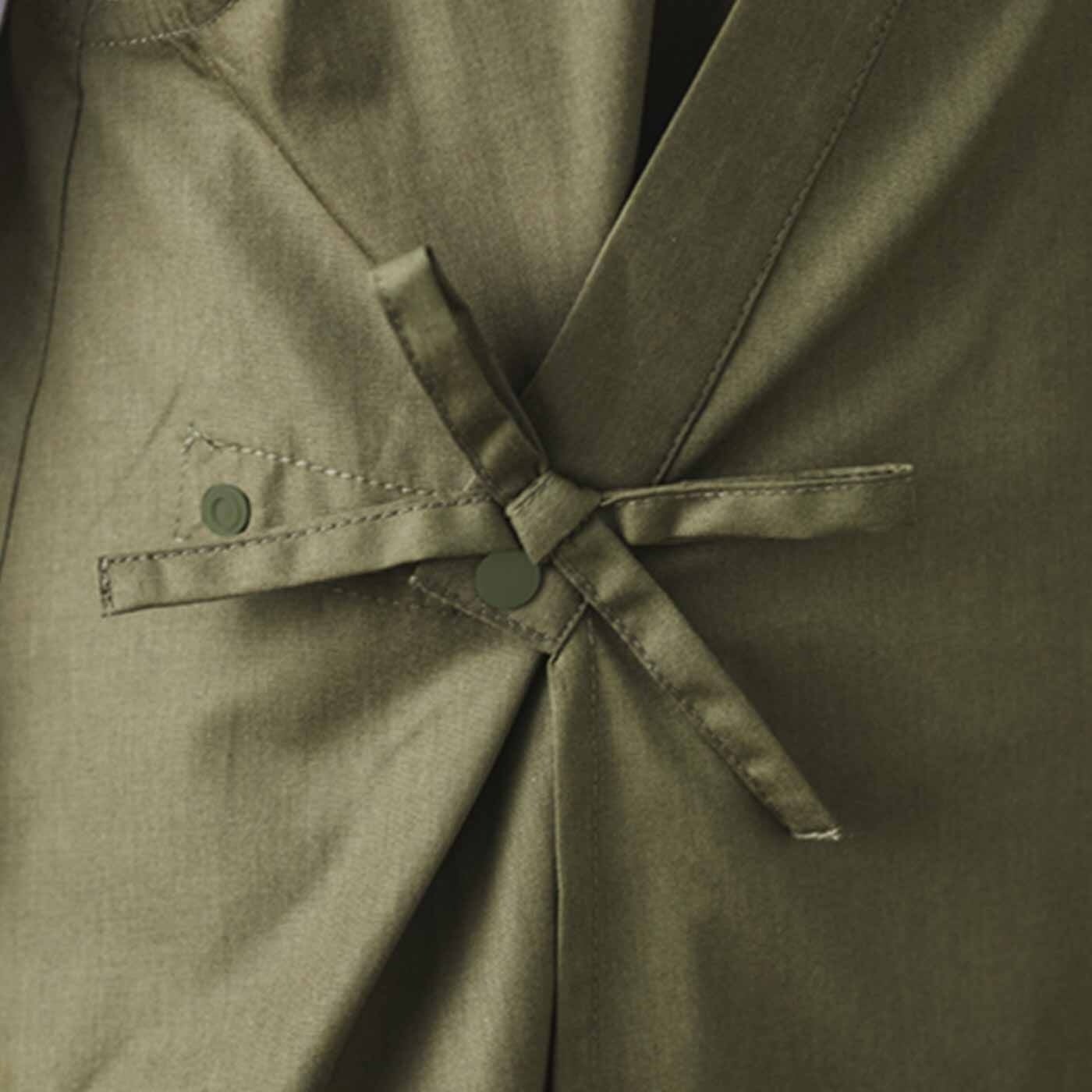 ワンマイルウェアとしても活用しやすい落ち着きのある〈枯草色〉〈藍色〉〈亜麻色〉の和の色です。洗い替えやコーディネートに合わせて着まわしたくなる3色展開です。
