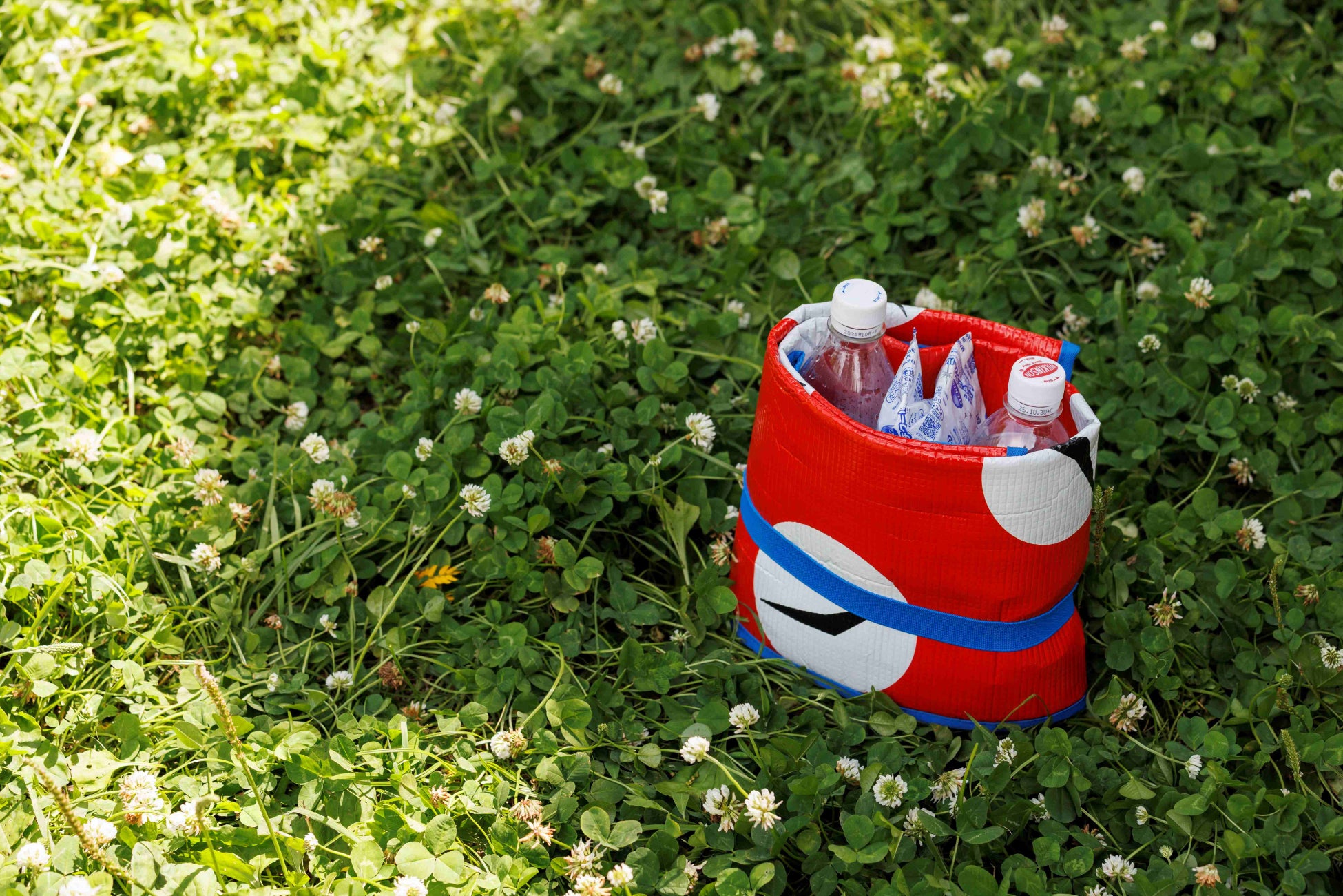 赤い面を外側にして丸めて保冷剤を入れれば、簡易な保冷バッグとしても活躍します。
