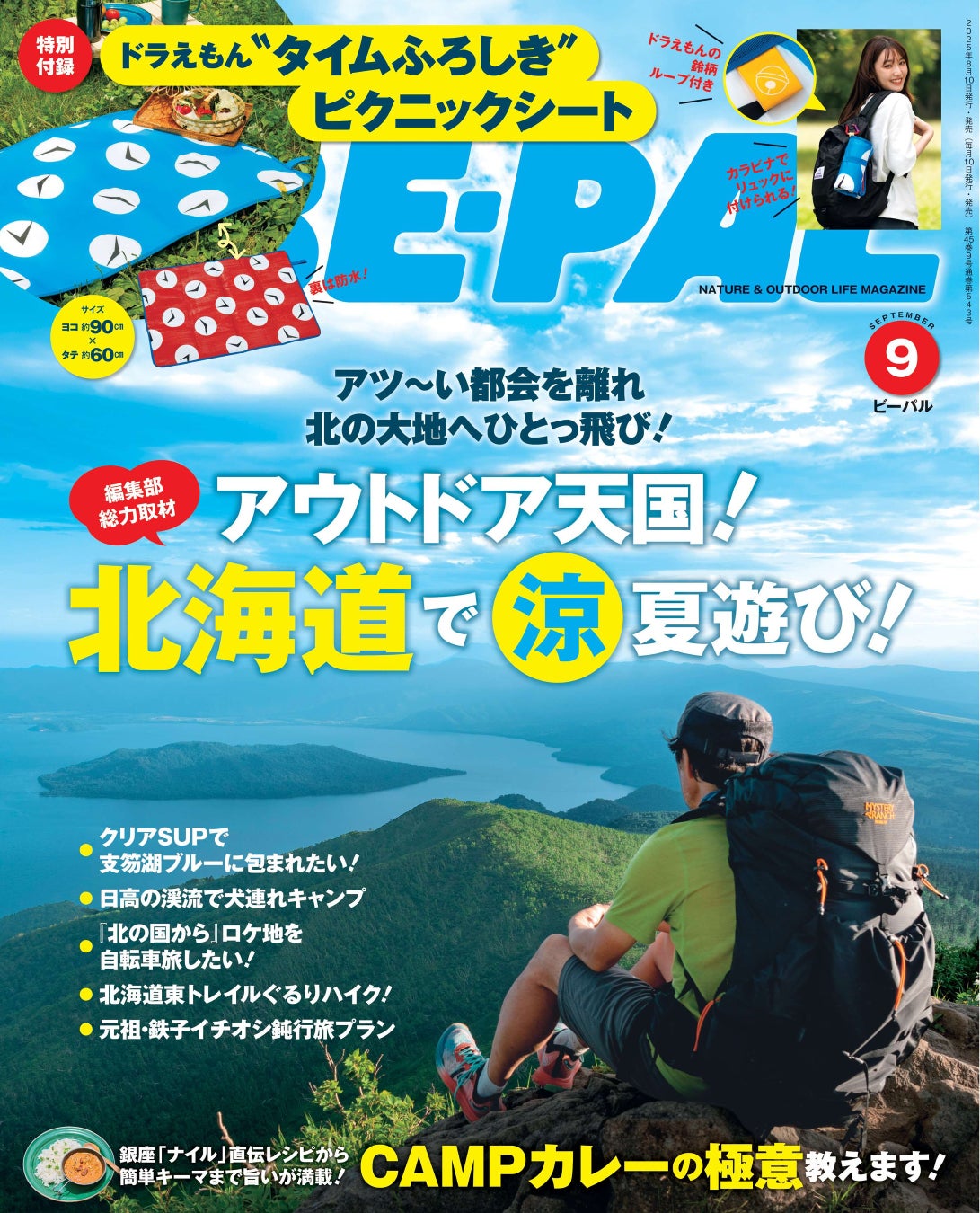 BE-PAL9月号の付録は、ドラえもんのひみつ道具 “タイムふろしき” 柄を忠実に再現した『ドラえもん “タイムふろしき” ピクニックシート』。クルクルッと丸めて付属のゴムループで小さく収納できる、両面使いの便利なピクニックシートです!
