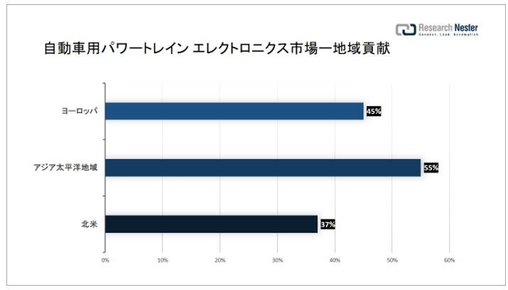 さらに、ヨーロッパの自動車用パワートレイン エレクトロニクス市場も、2033 年末までに顕著な市場成長を示すと予想されています。市場の成長は、この地域での電気自動車に対する需要の急増と、それに続く二酸化炭素排出量ゼロを達成するために政府が課した厳しい法律に起因する可能性があります。 たとえば、ノルウェーでは、電気自動車の販売が 2021 年に 85% 近くを超えました。これに加えて、今後数年間で、燃料効率が高く、低炭素放出のパワートレインを製造するための研究開発活動への投資が増加します。