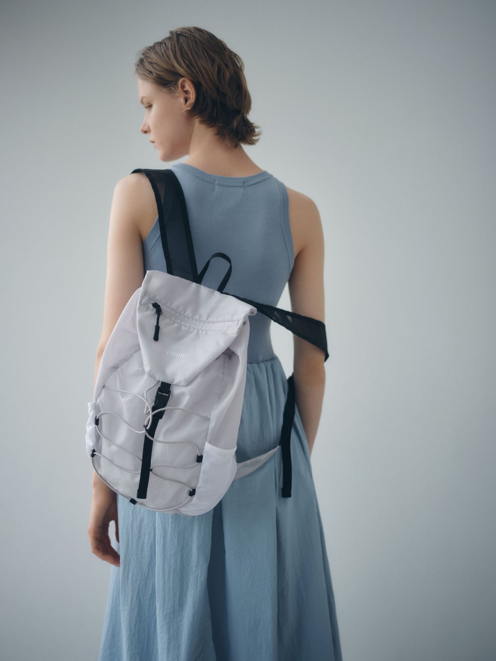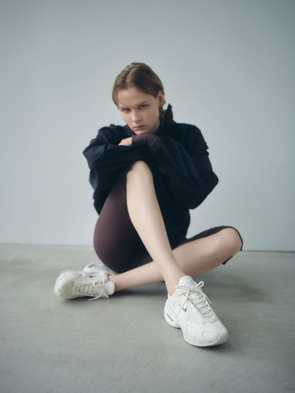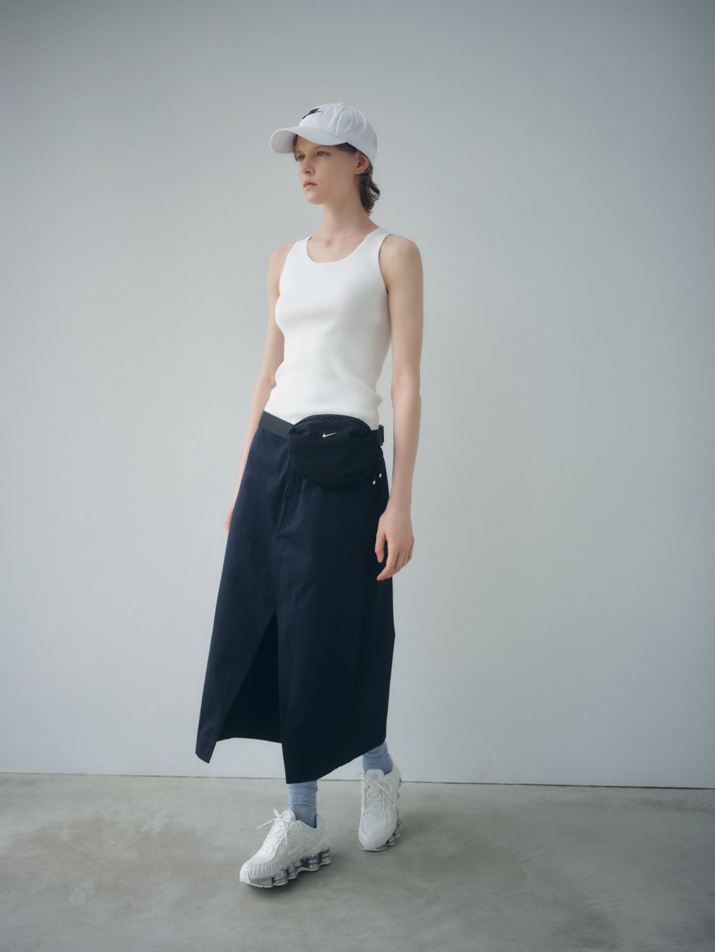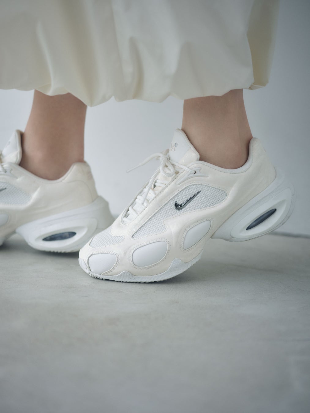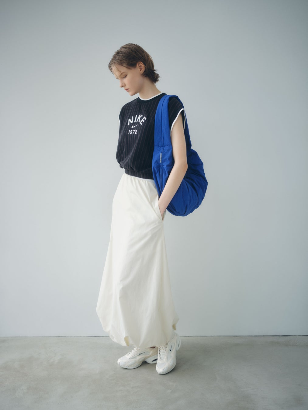 デイリーなコーディネートの中にNIKEとemmi でしか手に入らないexclusiveカラーの3タイプを取り入れたスポーティ×モードなコーディネートを提案。