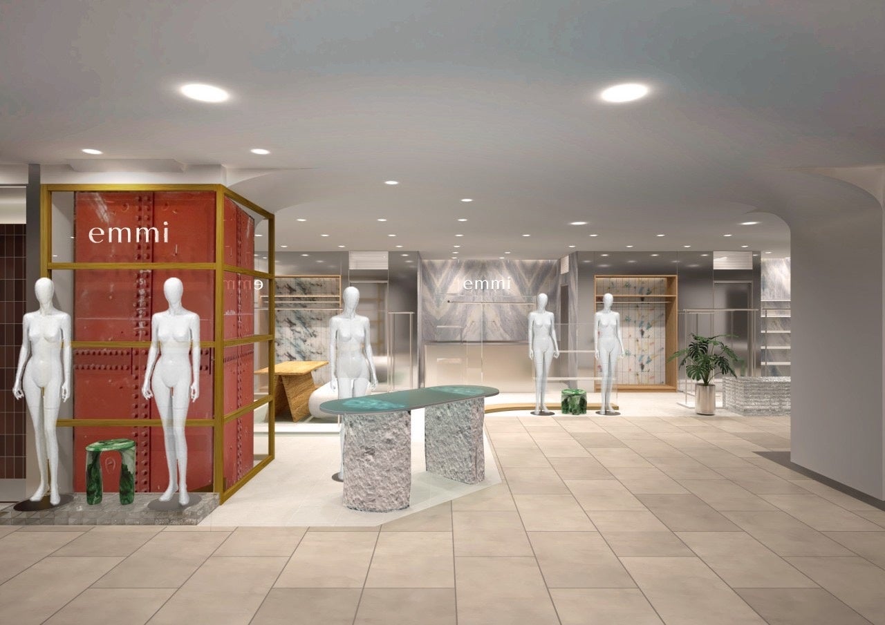 “クリアモード ’'をブランドコンセプトに掲げる emmi より、環境に配慮したクリーンな素材を多用する‘‘サステナブルコンセプトストア’'が誕生。