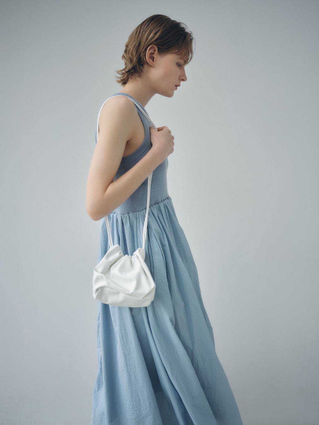 光沢があり手に吸い付くようなレザーライクな素材で高級感がありつつ、クリアモードな印象のホワイトカラーに。斜め掛けした時にちょうどよい長さで、デイリーからオケージョンまで活躍します。