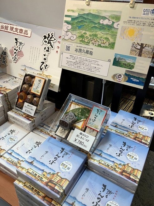 雨晴温泉 磯はなび限定の人気土産にアニメデザインのシールを貼付