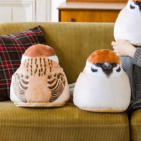 寒い季節にふっくらと丸い姿になった“ふくらすずめ”をモチーフにしたクッションです。