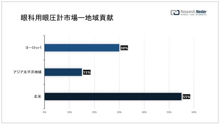 北米の眼科用眼圧計市場は、他のすべての地域の市場の中で、2035年末までに最大の市場シェアを保持すると予測されています。市場の成長は、医療施設の急速な拡大に起因する可能性があり、目の怪我の場合の急増は、予測期間中にこの地域の眼科眼圧計市場を牽引すると予想されます。たとえば、米国では毎年約2.5百万件の眼の損傷が発生していることが観察されました。これらの怪我のうち約1,900件は、職場での怪我の結果として毎日発生しています。毎年、120,000の目の怪我が自宅で発生しています。