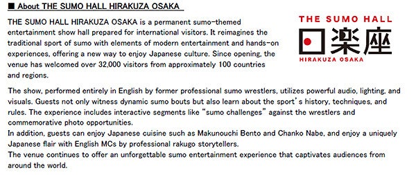 The Inbound-oriented Sumo Entertainment Show Hall “THE SUMO HALL HIRAKUZA OSAKA”