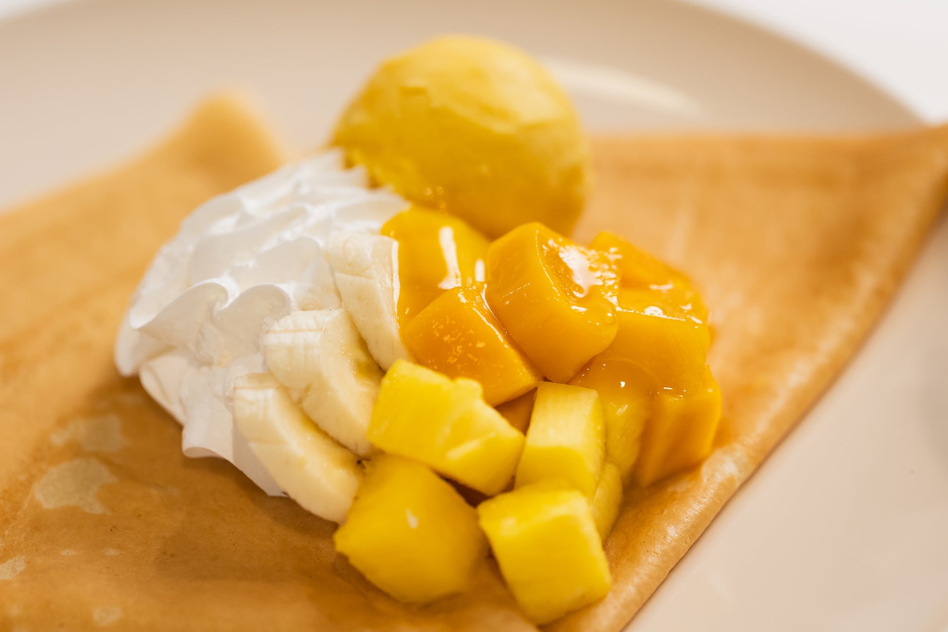 南国らしい果実をごろっとトッピングしたクレープ。