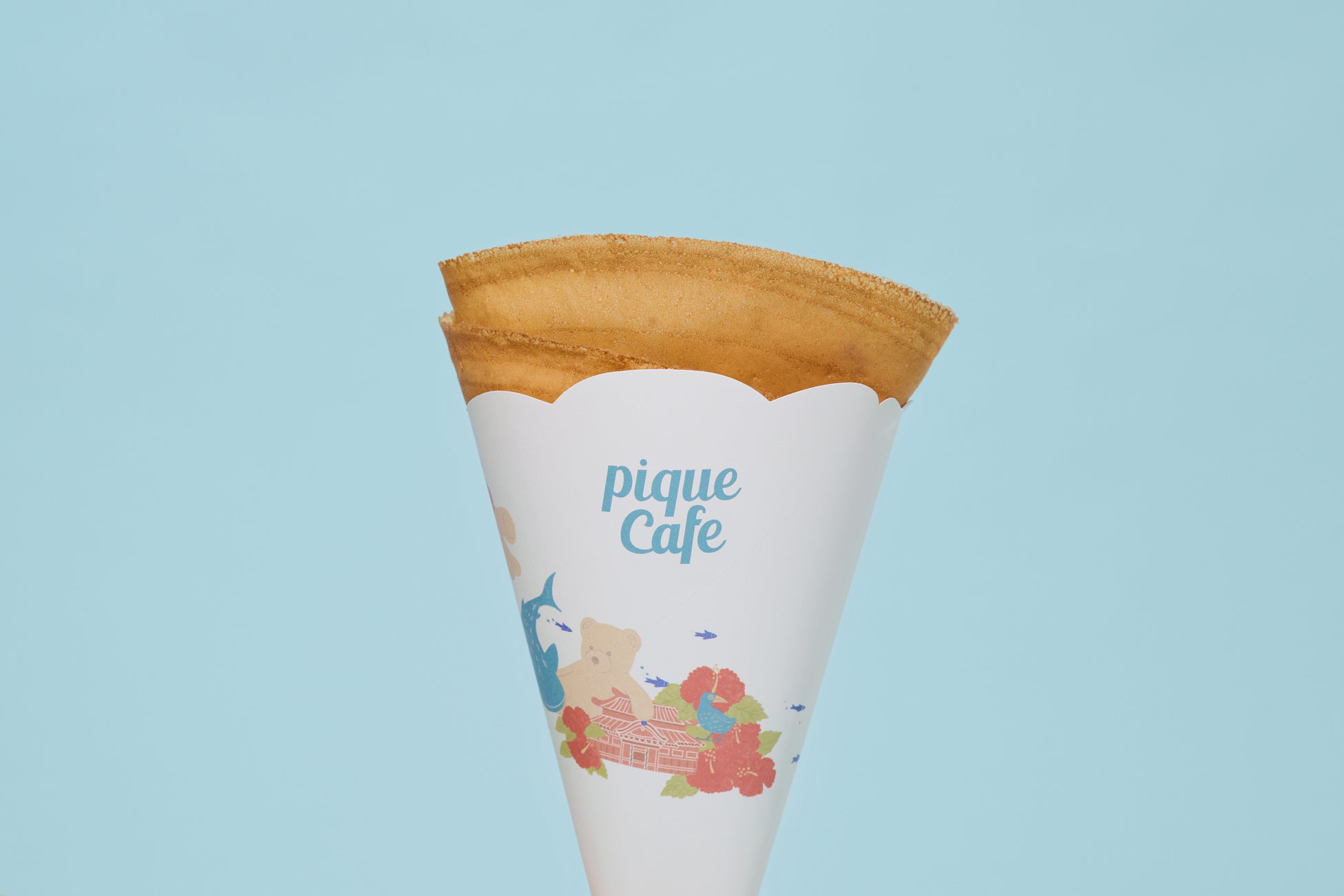 沖縄限定クレープは、沖縄らしいモチーフを散りばめた専用のクレープ紙に包んでお渡ししています。