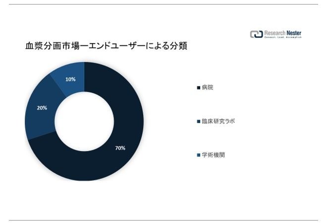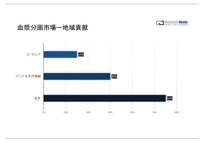 エンドユーザーに基づいて、これらのうち、病院セグメントは、予測期間中に最大の収益を生み出すとされています。このセグメントの成長を促進する主な要因は、自己免疫疾患、神経疾患、出血、その他の疾患を含むさまざまな疾患の治療における血漿分画製品の採用の増加と、世界中で血漿由来の治療法を選択する患者プールの増加です。 さらに、世界のあらゆる地域で増加している病院の数と、病院内の血漿提供センターの存在も、このセグメントの成長を後押しすると推定されています。セグメント開発のその他の成長要因には、病院のインフラへの投資の増加、およびヘルスケア部門の拡大が含まれます。