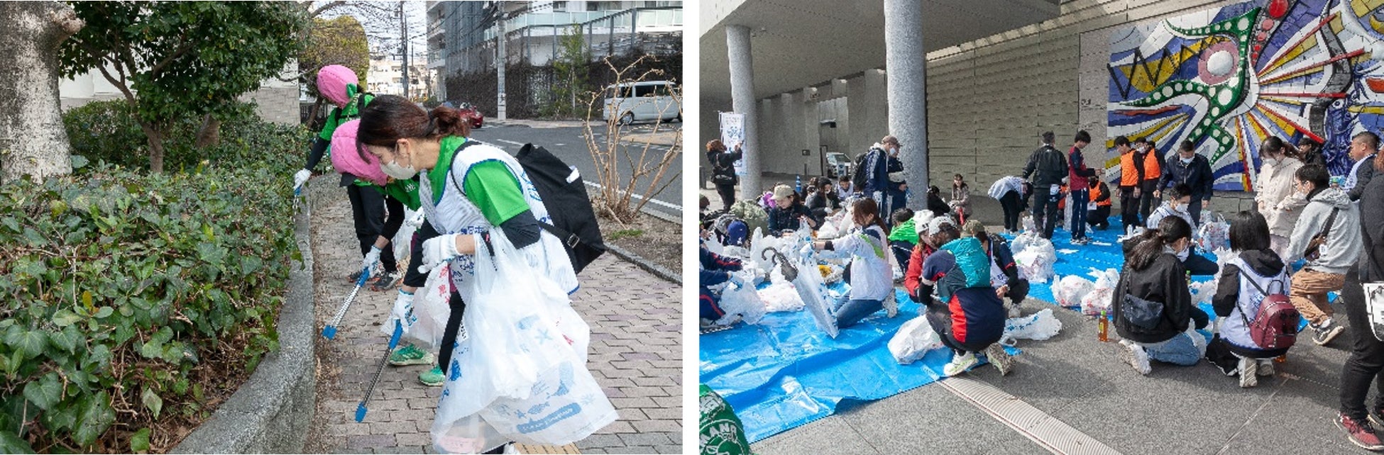 友人同士で参加したチームや学校、職場の仲間同士で参加したチーム、ご家族で参加したチームなど、県内外から多くのチームが参加しました。どのチームも気合十分で、スタート前の作戦タイムでは「どのルートを回れば効率的にごみを拾うことができるか」「役割分担をどうするか」など、意見を出し合いながら各チーム思い思いの作戦を話合っていました。その後、出場者を代表してアサヒ飲料チームの代表者が登壇し選手宣誓を行った後、「CHANGE FOR THE BLUE」の掛け声で全チーム一斉にスタート。60分の激闘を繰り広げました。街には多くの空き缶、たばこの吸い殻、ナイロン袋、家庭ごみなど様々なごみが落ちており、参加者は競技に参加しながら、街に捨てられているごみの多さを改めて実感しているようでした。