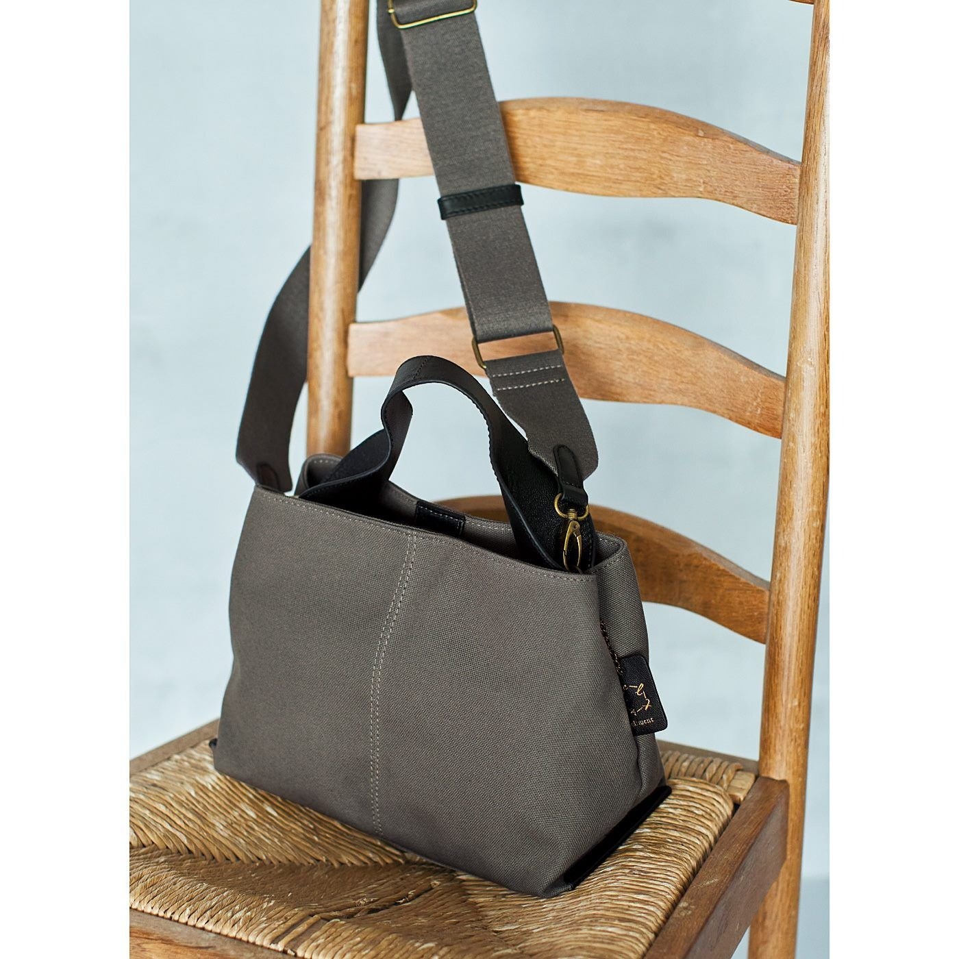 【NEW】el:ment 倉敷帆布と本革遣い ショルダー遣いもできる ワイド持ち手のワンハンドバッグ〈スズ〉