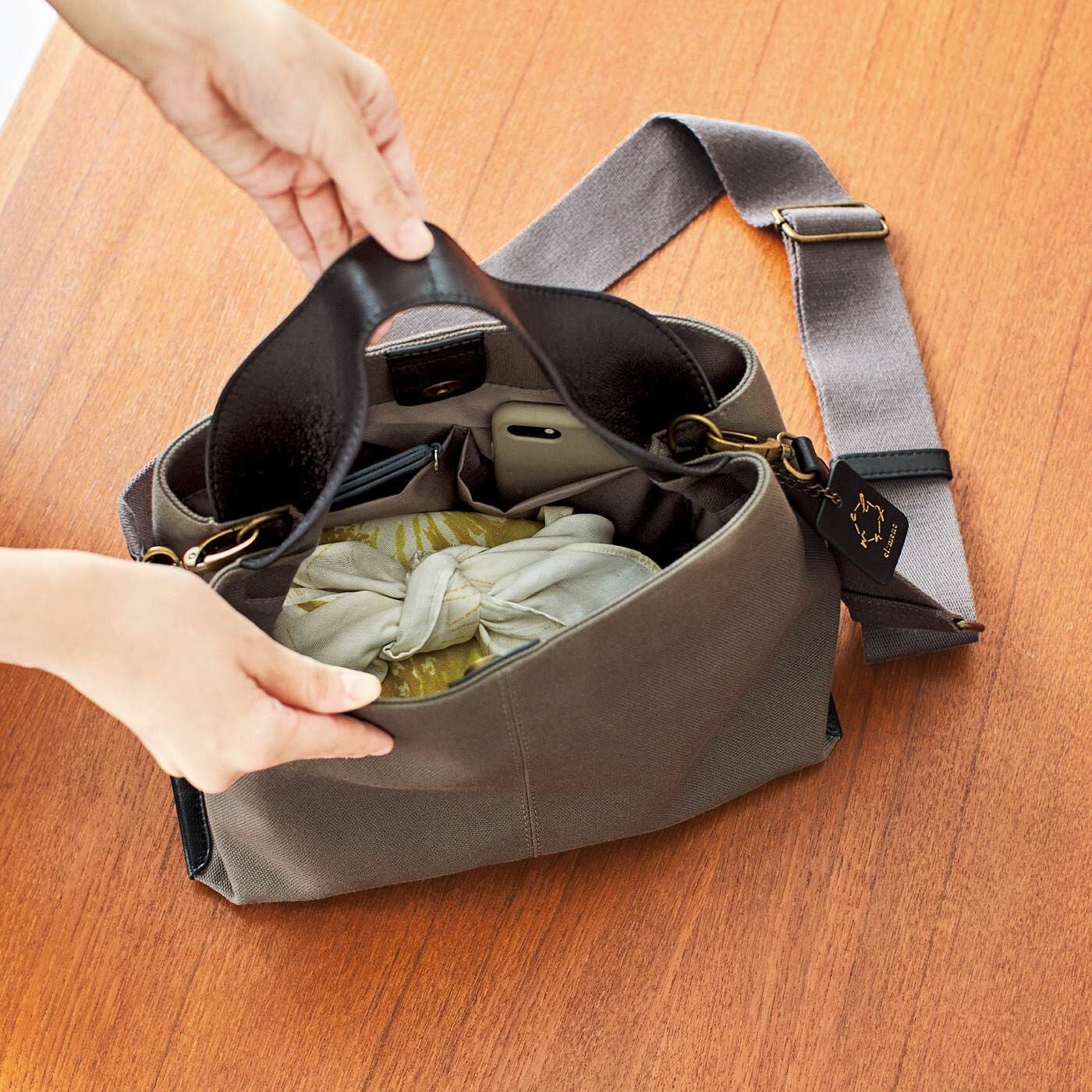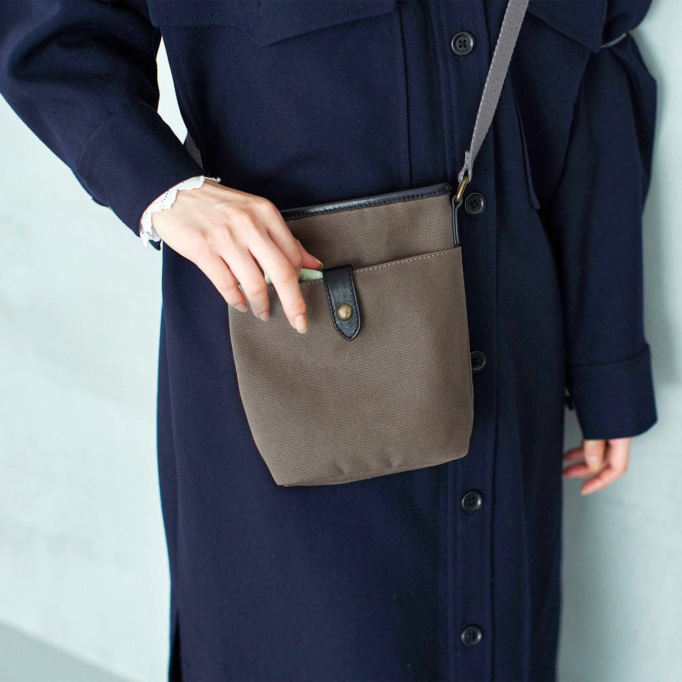 【NEW】el:ment 倉敷帆布と本革遣い 必需品をまとめられる 軽やかショルダーバッグ〈スズ〉