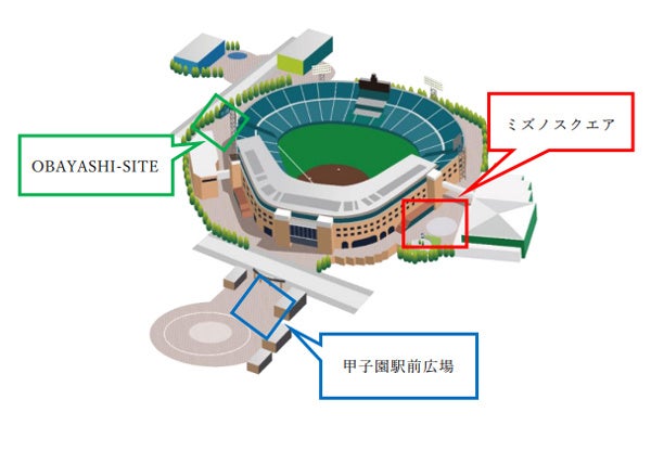 阪神甲子園球場外周1塁側ミズノスクエア、外周レフト側OBAYASHI-SITE、