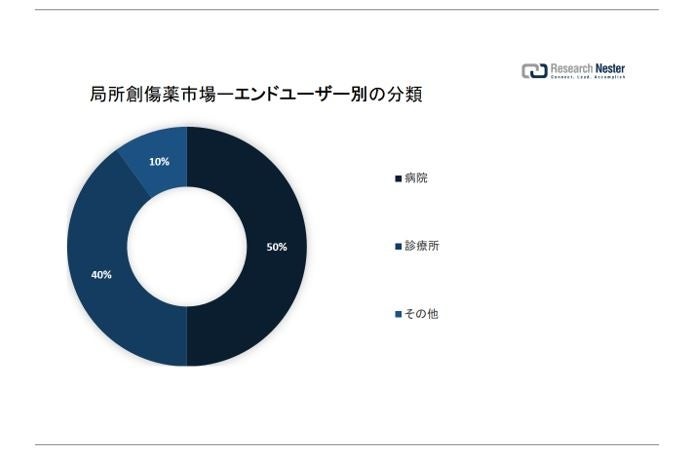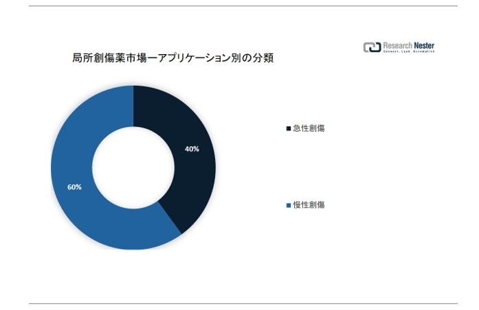 エンドユーザー別に基づいて、慢性創傷セグメントが市場で最大のシェアを占めると予測されています。 成長に起因する主な要因は、糖尿病、肥満などの慢性疾患の有病率の増加であり、糖尿病性足潰瘍、静脈性下肢潰瘍などの慢性創傷につながります。 局所創傷剤は、痛みを伴わずに慢性創傷を治癒する効果的な医療製品です。 また、外科的処置、外傷事件、および事故の症例の増加により慢性疾患の数が増加すると予想され、最終的には局所創傷剤に対する高い需要が生じます。