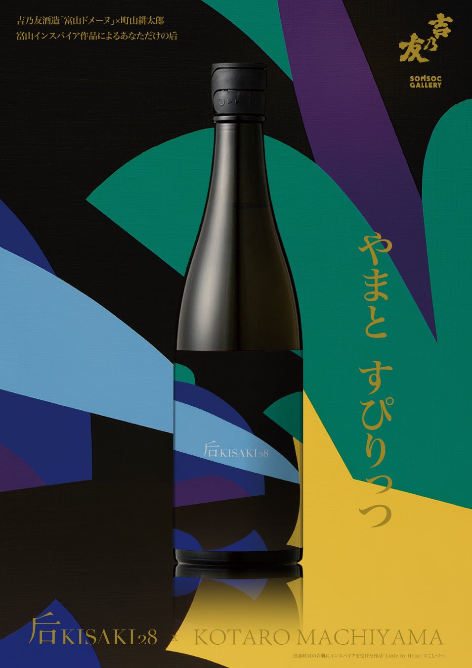 ラベルは、フラットな世界を鮮やかな色彩で描く画家として活動する町山耕太郎が書き下ろした新作をもとに研美株式会社がデザイン。富山湾や立山連峰など、富山の風景からインスパイアを受けて表現した作品で彩られた化粧箱に収めてお届けいたします。