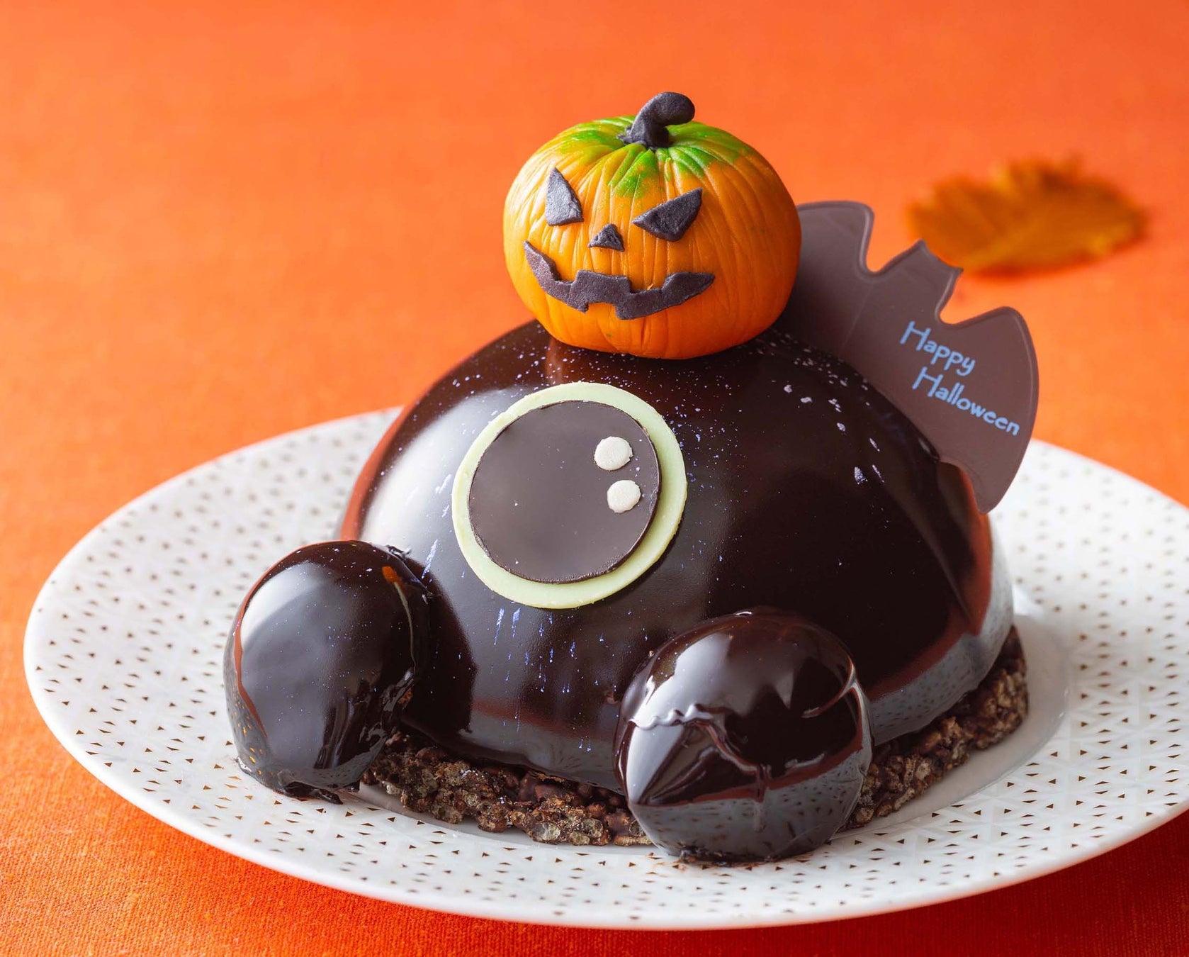 大きな一つ目のモンスターをかたどったドーム型のケーキの中には、香ばしくキャラメリゼした洋梨のコンポートと、滑らかなチョコレートムースが。底に敷いたサクサク食感のチョコレートクランチとご一緒にどうぞ。また、トップには、マジパンで作ったおばけカボチャも!その表情とは裏腹に、優しい甘さのホワイトチョコレートを包んでいます。思わず写真を撮りたくなる可愛らしい見た目で、“ハッピー”なハロウィン気分を盛り上げること間違いなしです。