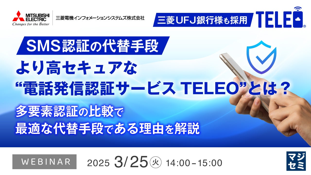 マジセミ株式会社は「SMS認証の代替手段、より高セキュアな“電話発信認証サービスTELEO”とは?」というテーマのウェビナーを開催します。