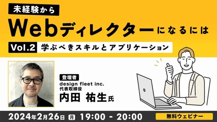 株式会社クリーク・アンド・リバー社(C&R社)は2月26日(月)、未経験からWebディレクターを目指す方を対象に、無料のオンラインセミナー「未経験からWebディレクターになるにはVol.2 ~学ぶべきスキルとアプリケーション~」を開催します。
