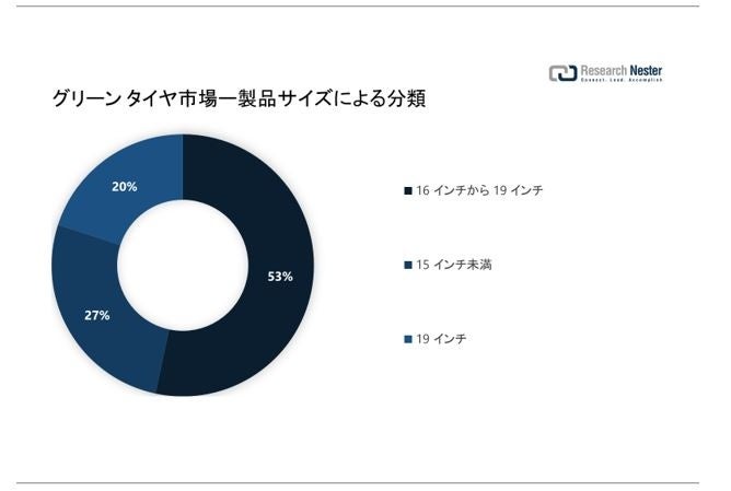 世界のグリーン タイヤ市場は、15 インチ未満、16 インチから 19 インチの間、および 19 インチ製品サイズ別に分割され、需要と供給について分析されています。これら 3 つのセグメントのうち、16 インチから 19 インチのセグメントが、予測される時間枠で最大の市場シェアを獲得すると推定されています。SUVやCUVなど大型車の普及に伴い、タイヤの大径化が進んでいます。快適で高級感のあるクルマを求める消費者のニーズから、大径タイヤを装着した自動車が増加傾向にあります。さらに、16インチから19インチのタイヤサイズは、より大型で燃費の良い自動車の需要が高まっているため、急速に成長しており、市場でのセグメントの成長を促進すると予想されています。