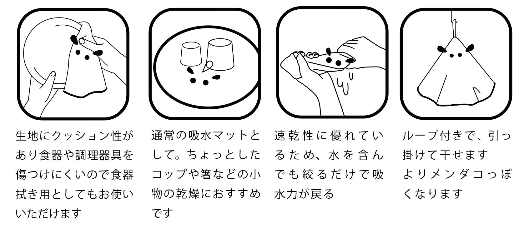 メンダコのマルチマットは食器を拭いたり、洗い物を乾かすときに使ったり、いろいろな用途に使えます!