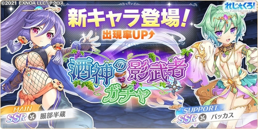 DMM GAMES「れじぇくろ!~レジェンド・クローバー~」にて、新キャラ「服部半蔵」「バッカス」が登場!さらに新たなマスタークエスト「シューター」「アサシン」も追加!