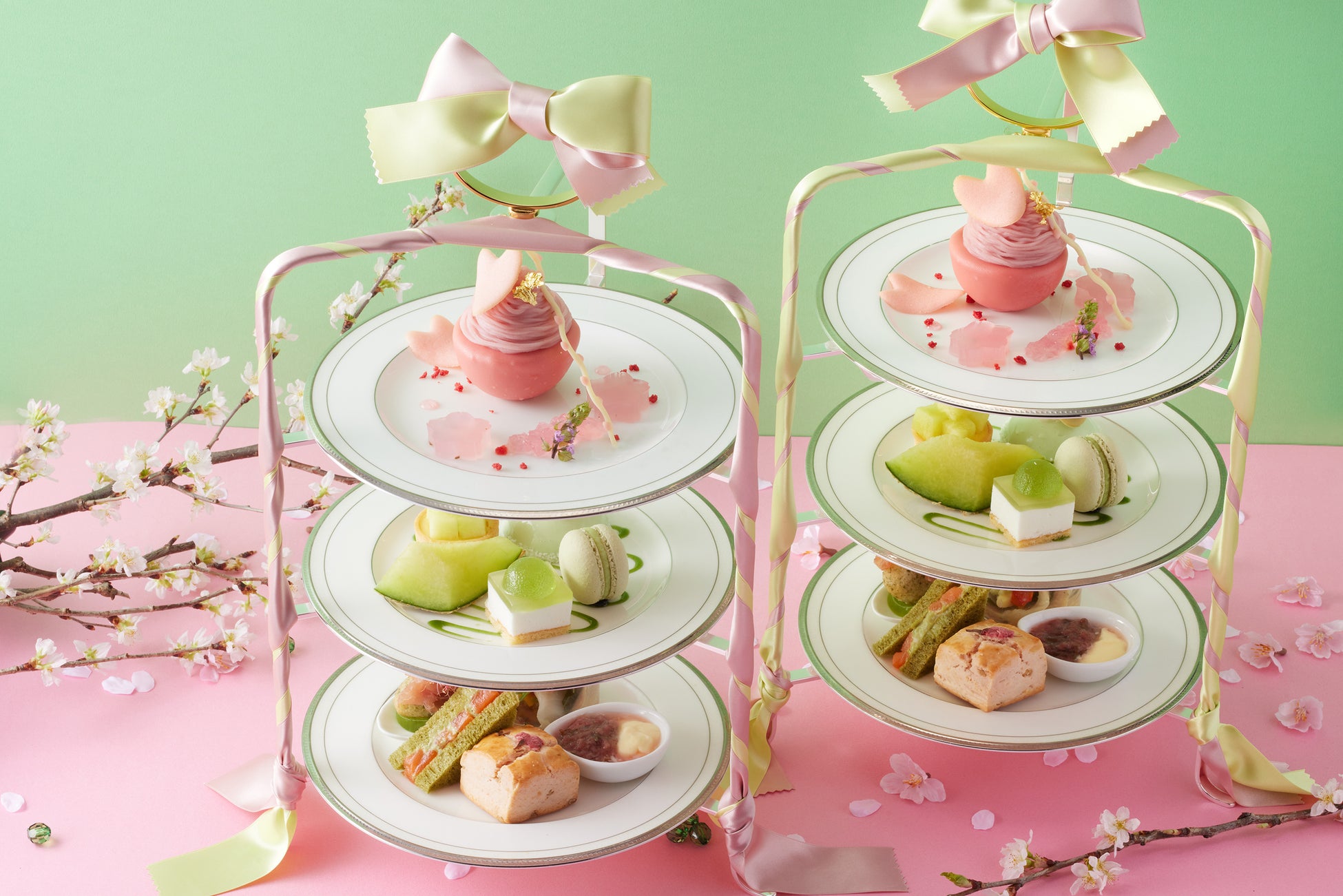 「The Lobby Cafe」では、ホテルから見えるレインボーブリッジにインスピレーションを受けて「色」をテーマとしたアフタヌーンティーを展開しております。今回は、ピンクとグリーンで春に咲き誇る桜をイメージした、春爛漫なアフタヌーンティーに仕上げました。