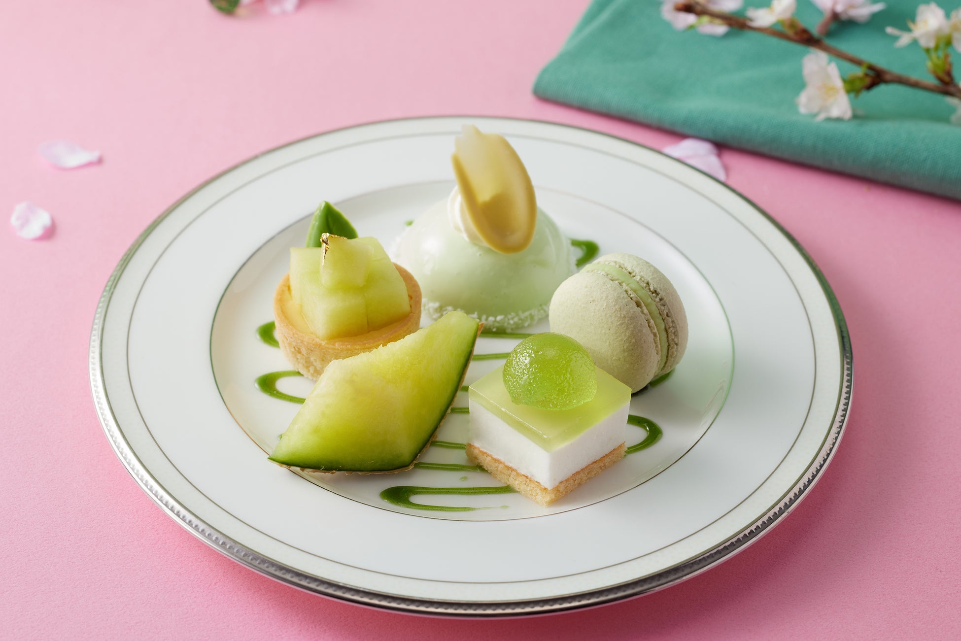 可愛らしい桜とメロンの爽やかなグリーンが彩る、お花見お花見気分を楽しむ春爛漫なスイーツを堪能。