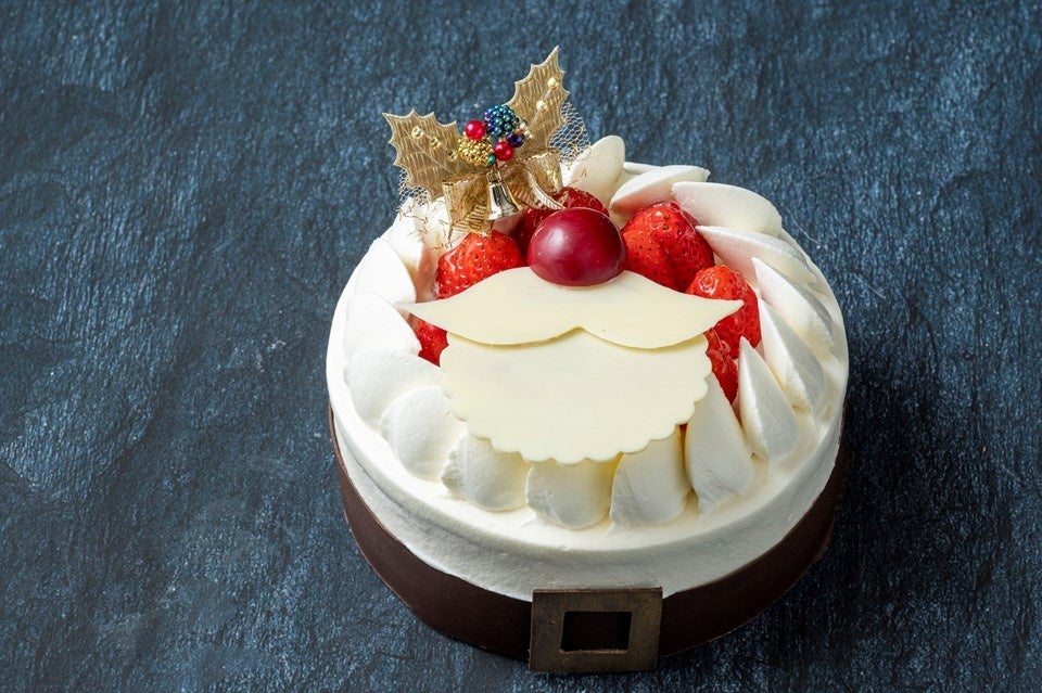 サンタクロースをモチーフにしたクリスマスの定番、苺と生クリームのケーキ。真っ赤な“あまおう”の甘味を引き立てるようにこだわった、風味豊かでキレのある北海道産生クリームと、苺リキュールの入ったシロップを染み込ませたスポンジでフルーティーな味わいに。艶やかな大粒の苺とホワイトチョコレートで象った大きなひげが目を引くビジュアルもお楽しみください。