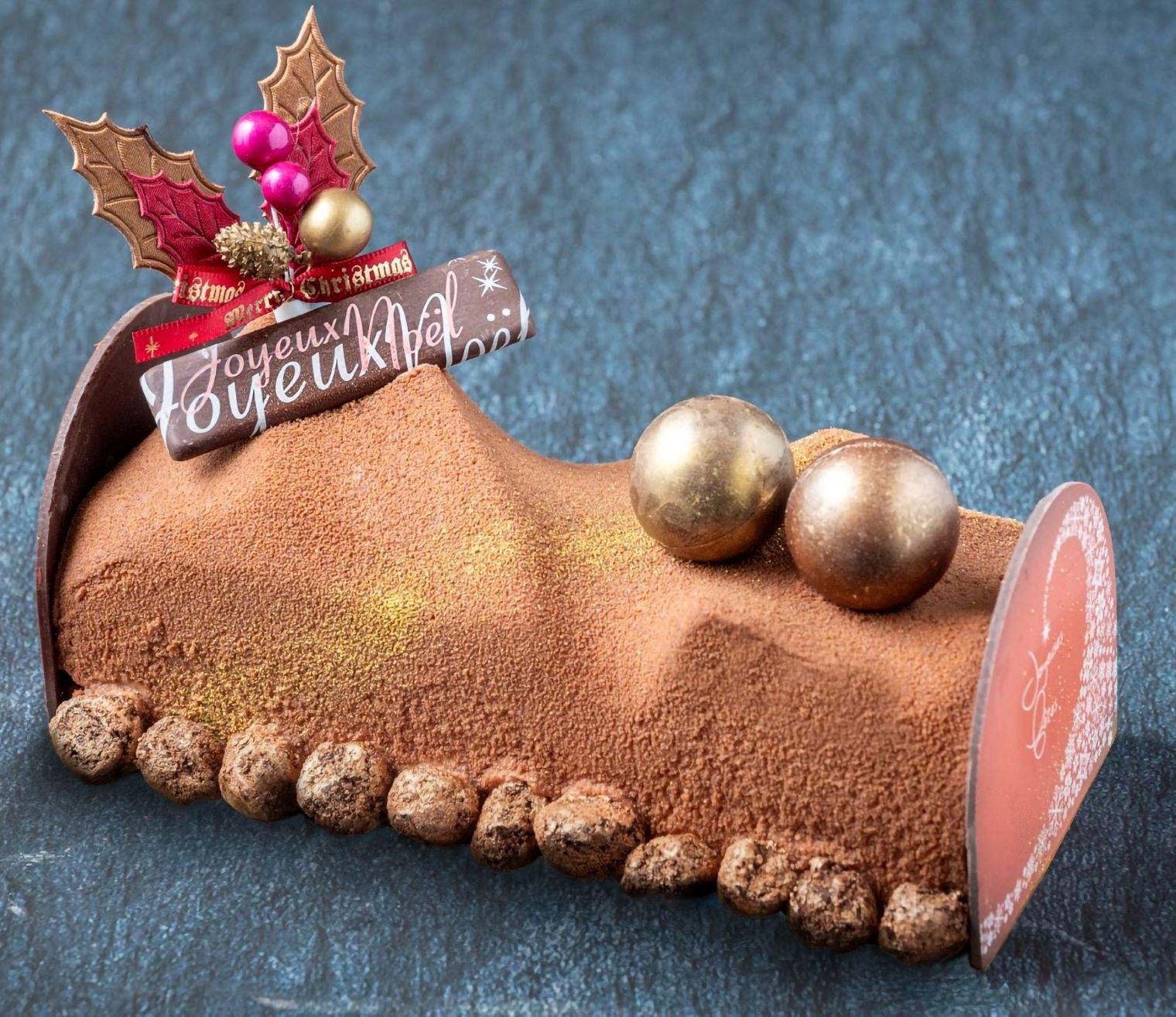 フランスの伝統的なケーキ、ブッシュ・ド・ノエルを香り高いマダガスカル産カカオを使用したまろやかなムースで仕上げました。なかにはヘーゼルナッツを加えて芳ばしく焼き上げたダックワーズを底に敷き、ヘーゼルナッツとミルクチョコレートのフィアンティーヌ、爽やかなレモンのクリームを層にしました。樹木を思わせるぬくもり溢れるケーキは誰からも愛される一品です。