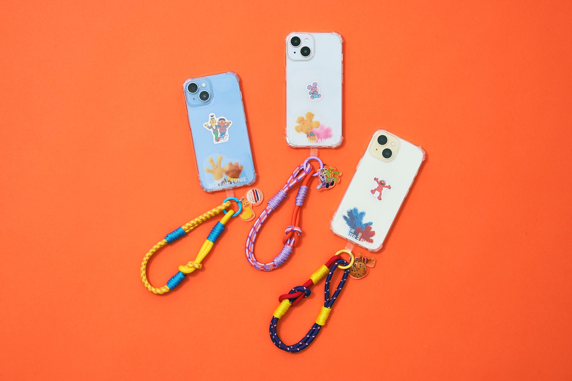 さりげないキャラクター配置とポップなカラーのストラップ部分で、シンプルなクリアケースでも、セサミストリートの世界観を彷彿とさせるカラフルな姿に変身。