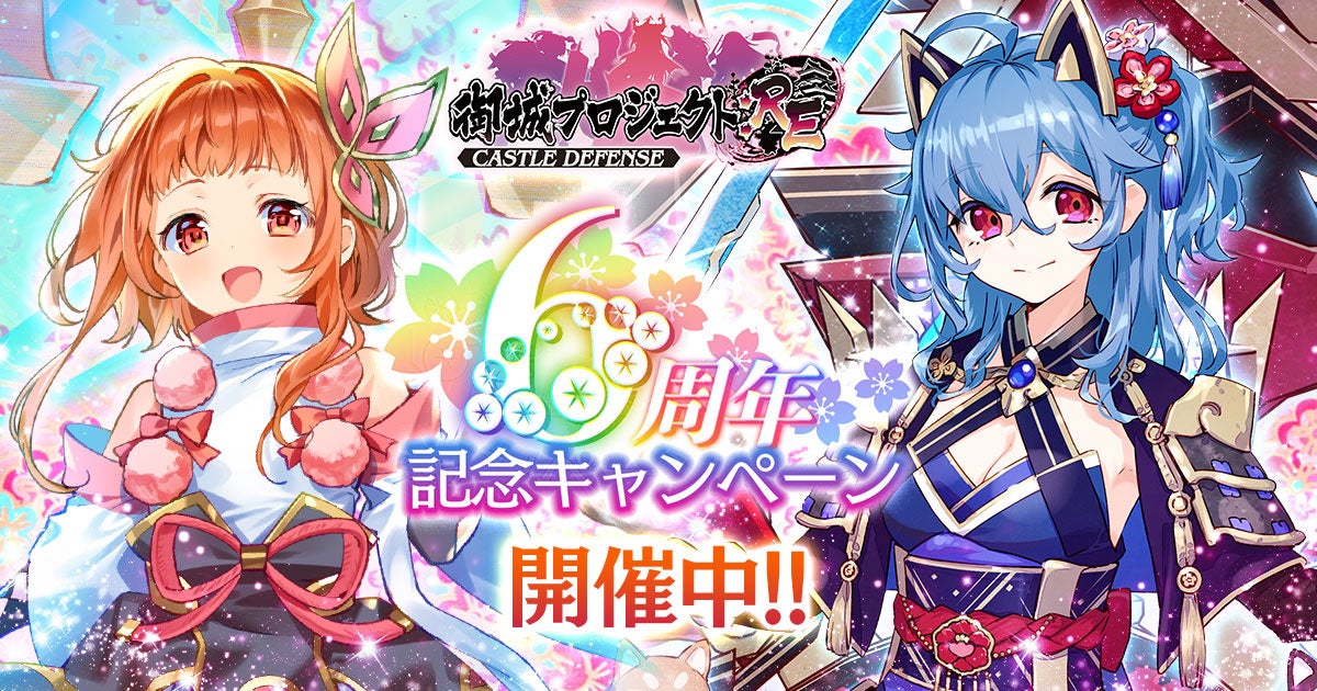 【6周年】今なら最大600連ガチャが無料!田村ゆかりさん、桑島法子さん演じる新武器種の新規★7城娘も実装!6周年記念キャンペーン開催!【御城プロジェクト:RE】