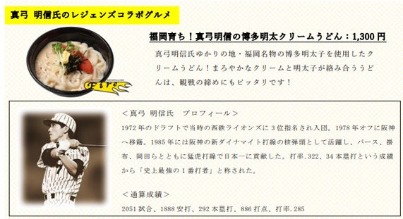 ライティングアクリルスタンドは、華やかな栄光をイメージした7色の光に照らすことが可能です。真弓明信氏の「福岡育ち!真弓明信の博多明太クリームうどん」をはじめ、各世代を代表する阪神タイガースOBとコラボした「レジェンズコラボグルメ」をこの機会に是非ご賞味ください。