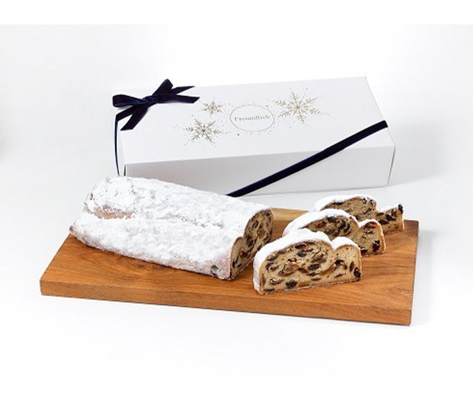 ドイツの伝統菓子「シュトーレン」。ドライフルーツとナッツがたっぷり。熟成された深みのある風味と味わいをお愉しみください。