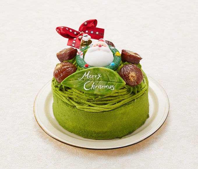 抹茶の軽い別立て生地と抹茶のババロワを重ねました。モンブランクリームには熊本県の和栗を使用。そこに手摘みの宇治抹茶を混ぜ合わせ絞りました。特別なクリスマスにふさわしいスイーツです。