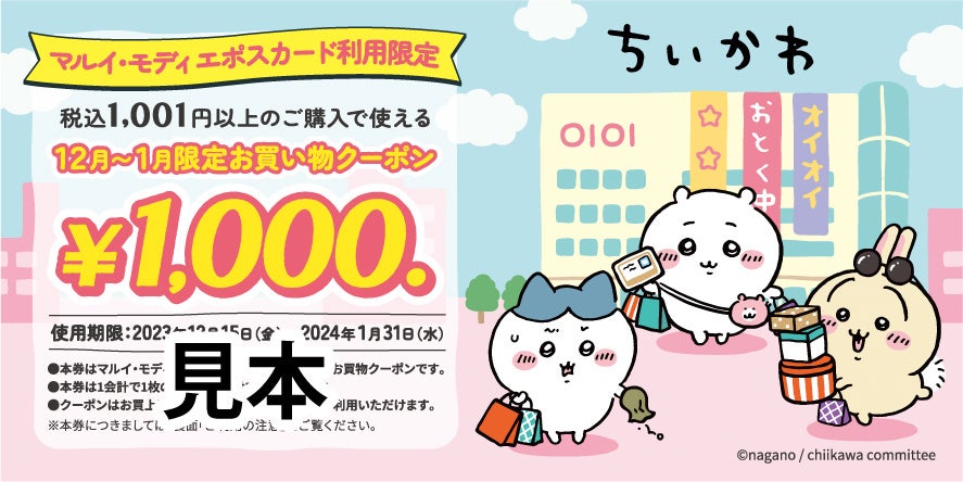 さらに、2023年11月11日(土)~11月17日(金)の期間中、マルイ・モディ店頭でエポスカードの新規ご入会+アプリダウンロードで、ご入会当日~11月30日(木)にご利用いただける1,000円分のクーポンをプレゼントいたします。